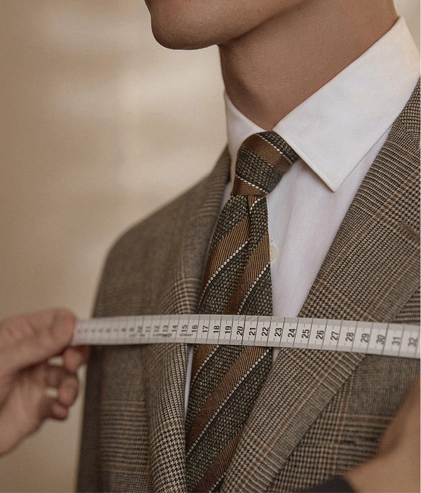 O primeiro encontro é sobre você. Analisamos sua postura e medimos o corpo em mais de 308 pontos de medida para garantir o caimento preciso do seu traje feito sob medida.