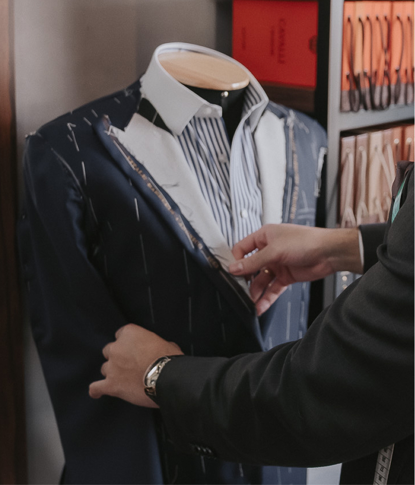 Nossos alfaiates transformam a visão em realidade. Com corte preciso e o domínio das técnicas manuais, sua peça exclusiva ganha vida com acabamento sofisticado e atenção a cada detalhe